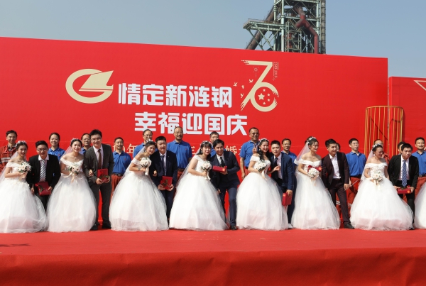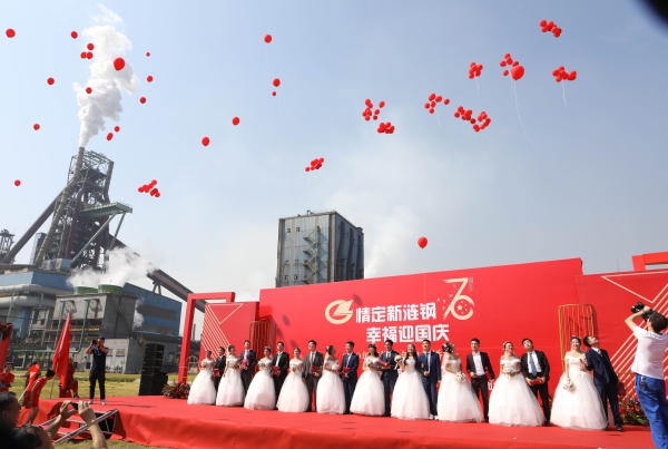 新郎李宇是華菱漣鋼熱處理板廠員工,他激動(dòng)的說:“我和我的愛人相識(shí)于漣鋼,相愛于漣鋼,在這十里鋼城,有我們?yōu)橹畩^斗的目標(biāo),也有我們愛的見證。在新中國(guó)成立70周年這個(gè)舉國(guó)歡慶的日子里,我們滿心歡喜,請(qǐng)漣鋼見證我們今天結(jié)婚了!也祝福我們偉大的祖國(guó)繁榮昌盛、人民幸福安康!”。華菱漣鋼2250熱軋板廠員工、新郎劉亞馳也表示,在新中國(guó)成立70周年之際,能夠參加這樣的集體婚禮,幸福感倍增。作為新時(shí)代的一名新青年,自己和愛人一定會(huì)更加努力工作,為建設(shè)美麗的漣鋼添磚加瓦!為實(shí)現(xiàn)美麗的“中國(guó)夢(mèng)”貢獻(xiàn)力量!