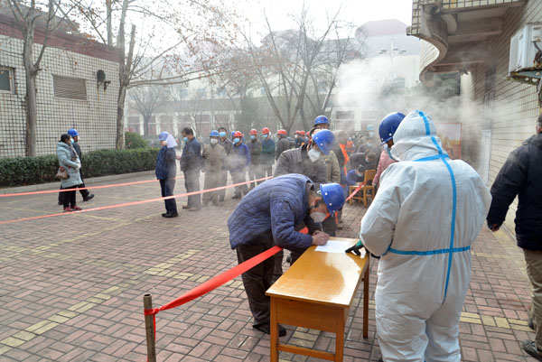 1月11日,安鋼第一煉軋廠職工正在有序排隊做全員核酸檢測(如圖)。連日來,安鋼集團(tuán)聞令而動,全體干部職工積極響應(yīng),主動配合政府部門做好全員核酸檢測工作,做好職工健康碼、行程碼查驗(yàn),對食堂、澡堂等人員密集場所進(jìn)行限流,全力以赴筑起疫情“防控墻”。 (王述杰 攝)
