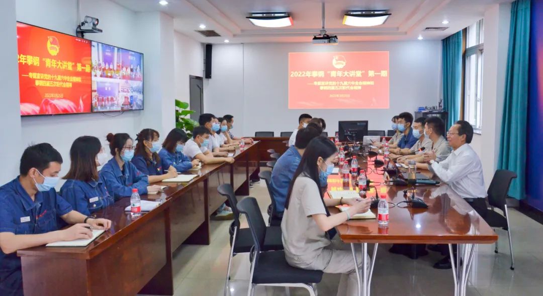 由攀鋼團委舉辦的2022年第一期“青年大講堂”——黨的十九屆六中全會精神和中共攀鋼九屆四次全委(擴大)會、攀鋼四屆五次職代會精神專題宣講。來自攀鋼各單位的56名團員青年參加了學習。