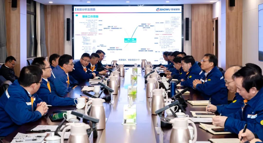在與鄂城鋼鐵領導班子座談時,吳琨宗表示,經歷了過去一年鋼鐵“寒冬”的錘煉和高爐波動的逆境,鄂城鋼鐵全體干部職工堅持發揚“艱苦奮斗、自強不息、嚴格苛求”的鄂鋼精神和“三個一”理念,奮楫前行的信心和精神狀態絲毫未減。2024年是鄂鋼品種質量轉型升級的關鍵攻堅之年,希望鄂城鋼鐵繼續堅持“求真務實、實事求是”的作風,帶領廣大干部職工堅定信心決心、鉚足干勁拼勁,緊盯各項目標任務,以“嚴細實快”狠抓降本增效項目落實落地,全力以赴打好生產經營“翻身仗”。期待鄂城鋼鐵通過技術降本、工藝降本堅定走極致高效之路;期待鄂城鋼鐵通過深化品種結構戰略調整,推進品種、質量轉型升級;期待鄂城鋼鐵通過推進模擬經營、一人一表等管理變革,走出一條鄂城鋼鐵特色高質量發展之路。他強調,鄂城鋼鐵領導班子要團結帶領廣大干部職工,認真貫徹“四化”“四有”、“四個全面”和“嚴細實快”四字要求,貫徹好中南鋼鐵職代會精神,承接落實好“百千萬”工程,堅持全面對標找差、全員創新創效、全面深化改革,持續推進品種結構調整,為中南鋼鐵實現“12345”目標、提升核心競爭力貢獻鄂城鋼鐵力量。