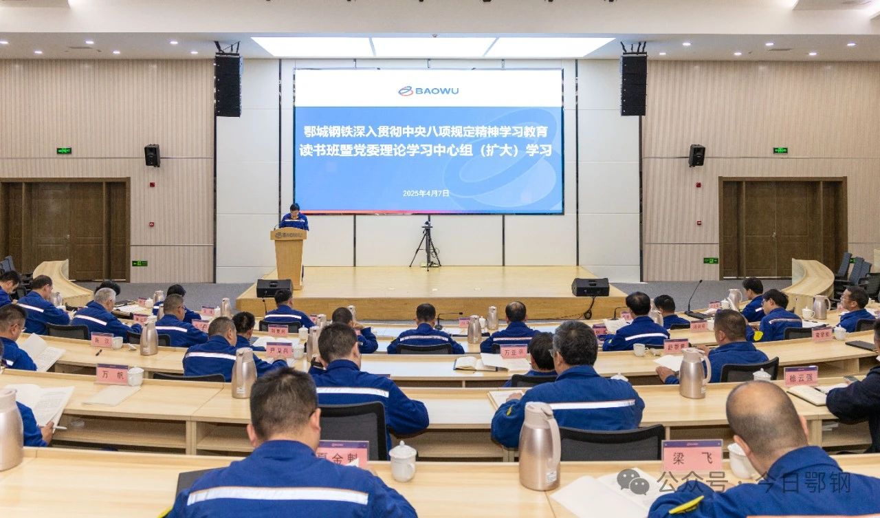 4月7日,鄂城鋼鐵公司舉辦領(lǐng)導(dǎo)人員深入貫徹中央八項(xiàng)規(guī)定精神學(xué)習(xí)教育讀書(shū)班暨黨委理論學(xué)習(xí)中心組(擴(kuò)大)學(xué)習(xí),學(xué)習(xí)領(lǐng)會(huì)、貫徹落實(shí)中央八項(xiàng)規(guī)定及其實(shí)施細(xì)則精神,運(yùn)用由風(fēng)及腐案例加強(qiáng)警示教育,引導(dǎo)黨員、干部錘煉黨性修養(yǎng)、提高思想覺(jué)悟、加強(qiáng)作風(fēng)建設(shè),永葆黨的先進(jìn)性純潔性,為持續(xù)打造綠色智慧高效美麗的新鄂鋼提供作風(fēng)保障。
