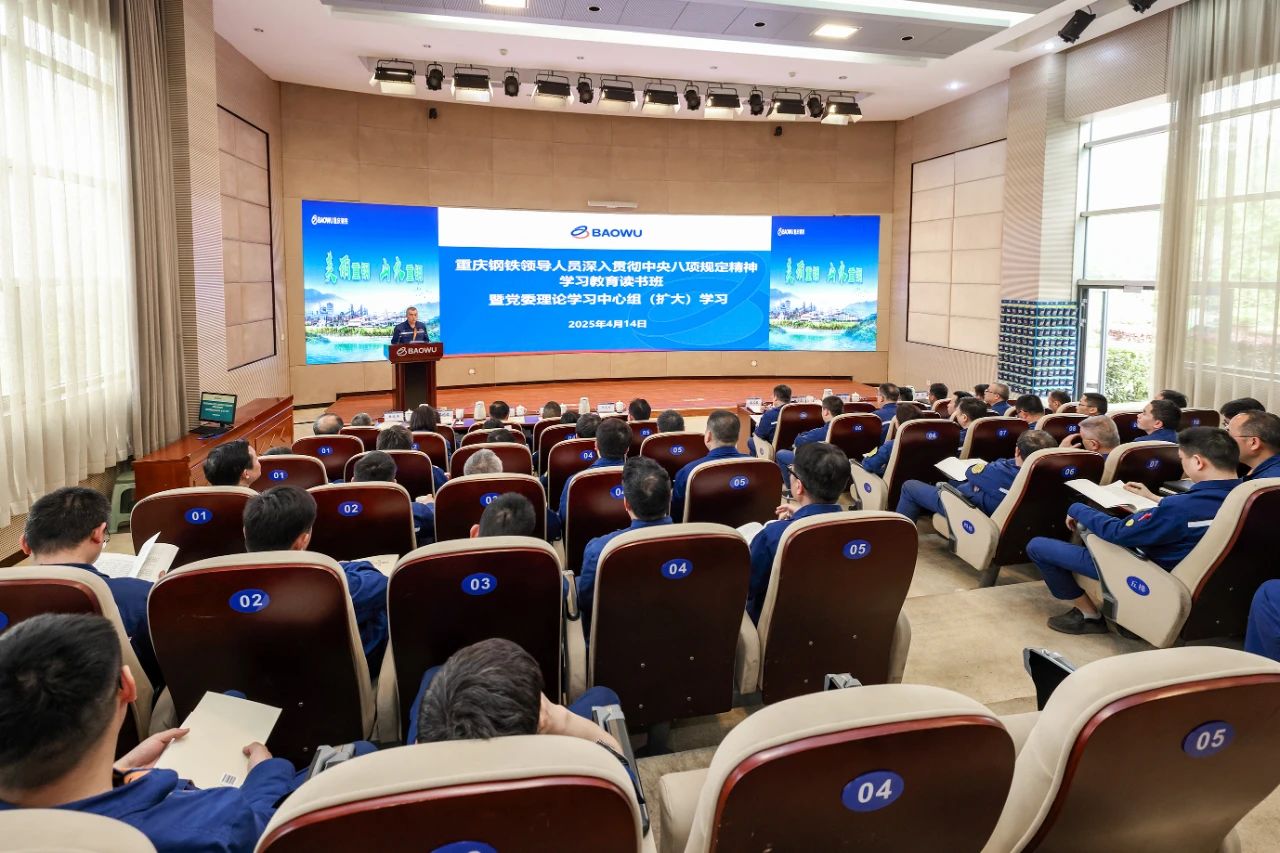 4月14日,重慶鋼鐵黨委舉行深入貫徹中央八項規定精神學習教育讀書班暨黨委理論學習中心組(擴大)學習,深入學習貫徹習近平總書記關于加強黨的作風建設的重要論述和中央八項規定精神。該公司黨委書記、董事長王虎祥主持會議并領學了《中共中央政治局貫徹落實中央八項規定實施細則》,參會相關公司領導領學了《習近平關于加強黨的作風建設論述摘編》部分章節。該公司領導,各單位廠部副職及以上管理人員參加學習。