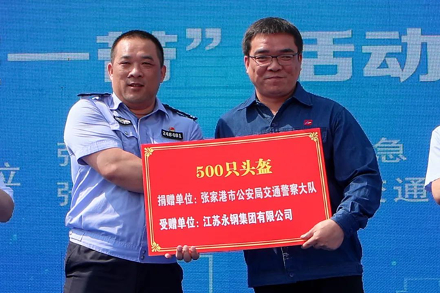 今年4月份,公安部“一盔一帶”安全守護行動在全國各地開展,永鋼集團也將把開展好“一盔一帶”宣傳教育活動作為“安全生產月”活動的重點內容之一。儀式上,市公安局交通警察大隊向永鋼集團捐贈500只安全頭盔,希望永鋼集團發揮引領示范作用,提升員工的文明交通和安全防護意識。