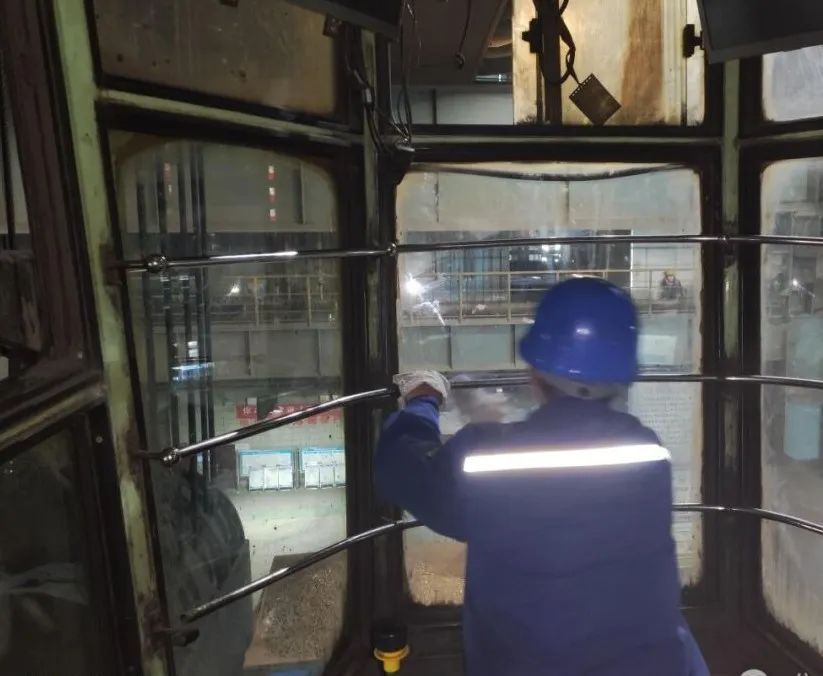 煉鋼廠運行車間職工抓住檢修期間天車未滿負荷運行的空檔期,對加料跨4號天車進行大清洗。普通清洗劑不能滿足去污要求,那就自購強力去污劑,人手不夠,那就發(fā)動骨干犧牲休息時間。從天車駕駛室每塊玻璃到每個細小按鈕,他們都認真清理,直到每塊玻璃變得通透明晰。曾經(jīng)的“臟老大”重整衣裝,在新的一年里繼續(xù)服務(wù)好每一爐“鋼水”。干凈整潔的環(huán)境也能讓天車操作更安全。(晏芳 顧芳 徐倩 李媛 桂多)