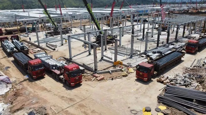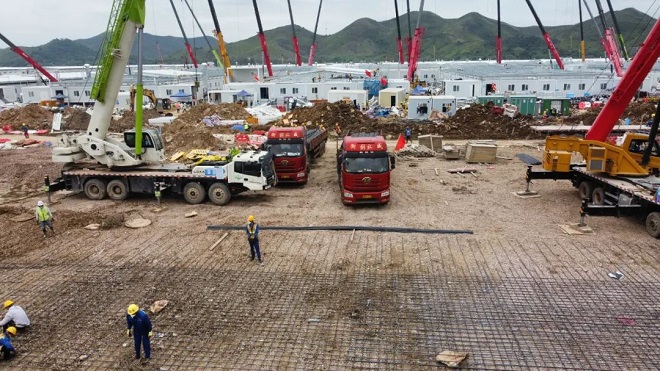 援建香港應(yīng)急醫(yī)院項目是國家有關(guān)部委協(xié)助香港抗疫的重點工作,3月開始建設(shè),一期總建筑面積約2.84萬平方米,醫(yī)院及附屬配套設(shè)施箱體4109個。醫(yī)院建成后,將有效提升香港收治新冠肺炎確診患者的能力。此次援港應(yīng)急醫(yī)院項目由中建科工總承包(EPC),中建集團援港抗疫工作專班全程支持。韶鋼松山是鋼材供應(yīng)的源頭企業(yè),使命光榮,責任重大。