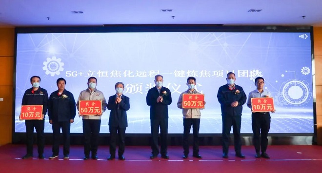 在當(dāng)天的投運(yùn)儀式上,韓珍堂和張?zhí)旄9餐瑸樘丶瘓F(tuán)項(xiàng)目代表頒獎(jiǎng)。太重集團(tuán)公司總會(huì)計(jì)師卜彥峰發(fā)表致辭,對(duì)“一鍵煉焦”正式實(shí)現(xiàn)場(chǎng)景式運(yùn)用表示熱烈的祝賀,向克服疫情影響奮戰(zhàn)在現(xiàn)場(chǎng)的太重項(xiàng)目組人員表示真誠(chéng)的慰問(wèn)。正是技術(shù)攻關(guān)小組通過(guò)一個(gè)月的精心研制,攻克多個(gè)技術(shù)難題,突破多項(xiàng)技術(shù)瓶頸,使焦?fàn)t各車輛間通過(guò)地面協(xié)調(diào)系統(tǒng)、無(wú)線通信網(wǎng)絡(luò)系統(tǒng)和車輛智能控制系統(tǒng),實(shí)現(xiàn)了精準(zhǔn)定位、聯(lián)鎖控制、視頻監(jiān)控、數(shù)據(jù)管理、安全防護(hù)、健康管理、故障診斷、應(yīng)急處理、人機(jī)交互等功能,有效助推焦化領(lǐng)域效能提升、節(jié)能降耗和轉(zhuǎn)型升級(jí)。