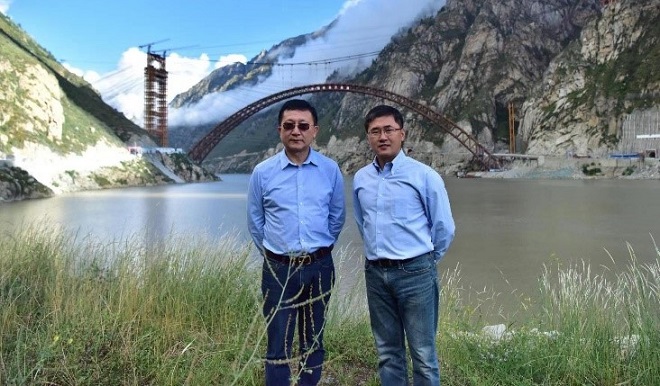 圖一 中國著名橋梁鋼專家中信金屬公司副總經理兼總工程師郭愛民博士(左)和本文作者王厚昕博士在中國耐候鋼橋第一座里程碑——西藏拉林藏木鐵路耐候鋼橋前留影。