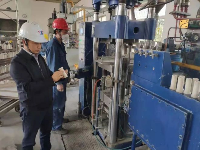 高桂航帶領他的企業在積極爭取外部推力的同時,想方設法增強內部動力,促進科技成果轉化,提升創新能力。他組建了一支由材料學專業的博士、碩士及高級工程師組成的專業核心研發團隊。他身先士卒,深入鋼廠中間包現場,與技術工人交流,了解實際情況,掌握一手資料;他和他的團隊成員一起,根據出鋼溫度、冶煉鋼種、鋼水成分、連鑄機拉速、連鑄坯坯型、渣系成份等技術信息,對氧化鋯鋯芯成份配制、成型技術、燒成溫度曲線做個性化研究,并制造出適應煉鋼—連鑄實際需求的控流產品;根據中間包不同的包型設計對應的綜合砌筑方案,對中間包紊流器的痛點做針對性研究開發,提高紊流器的抗沖刷、耐侵蝕性能;根據出鋼溫度、冶煉鋼種、鋼水成份、渣系成份等技術信息,研究干式料成份配制,使得干式料渣線部位耐火材料的抗渣侵蝕性能滿足中間包長時間連續澆鑄的要求。