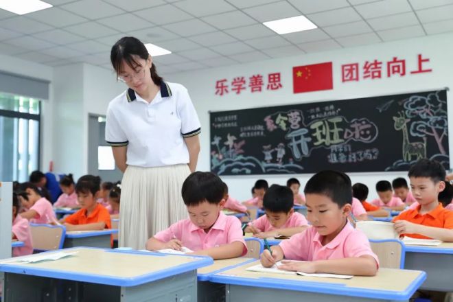 中天實(shí)驗(yàn)學(xué)校老師正在監(jiān)督學(xué)員們寫作業(yè)(陳明 攝)