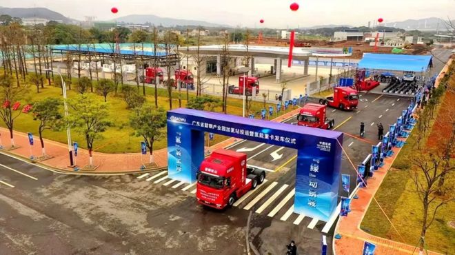 2021年12月20日,韶鋼舉行廣東省韶鋼產業園加氫站投運暨氫能重卡發車儀式。
