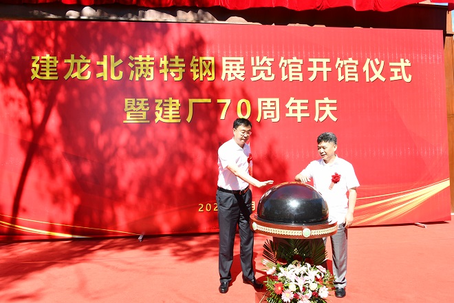 致辭結束后,齊齊哈爾市市委書記王剛與張志祥共同為建龍北滿特鋼展覽館揭幕。
