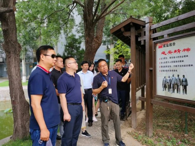 威猛股份總經(jīng)理王思民(前排右1)陪同來賓視察企業(yè)