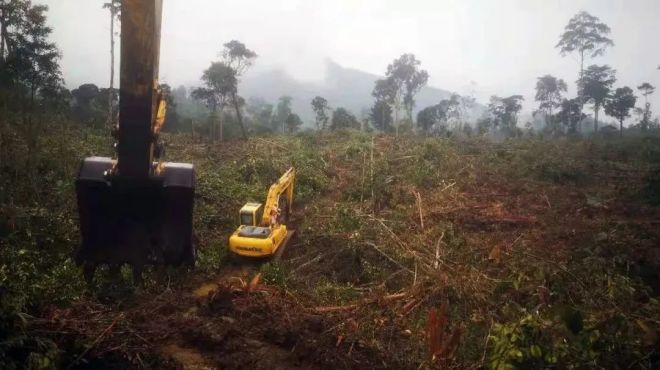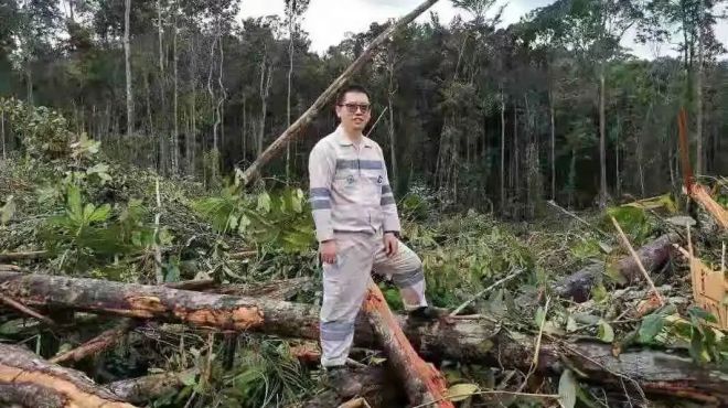 這里地處酷熱多雨的赤道,山丘起伏,溝壑縱橫,大部分為熱帶雨林的原始地貌,植被茂密,藤蔓叢生,要建工廠,首先就要“清表”,即清理掉地表植被。李建告訴記者,僅僅這一項(xiàng)任務(wù),就耗費(fèi)了足足兩個(gè)月時(shí)間。他們組織了當(dāng)?shù)氐氖畮孜煌诰驒C(jī)手,向雨林進(jìn)軍,這是一次艱苦的“征程”。