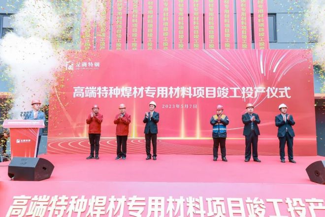 5月7日,龍騰特鋼高端特種焊材專用材料項目(雙高線分廠)竣工投產(chǎn)儀式隆重舉行,標志著龍騰特鋼產(chǎn)業(yè)鏈又一次完善升級,產(chǎn)品深加工能力邁上新臺階。