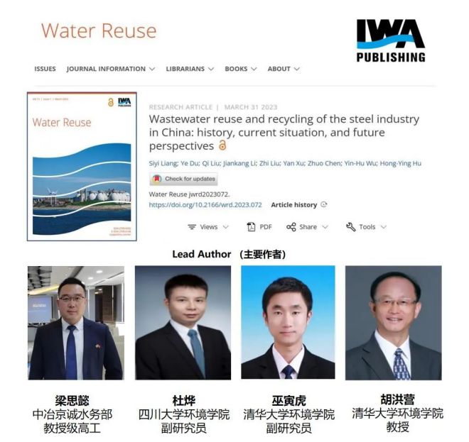 2023年3月31日,中冶京誠、清華大學(xué)、四川大學(xué)等單位在國際水協(xié)出版社(IWA Publishing)全球水回用領(lǐng)域重要SCI開源期刊《Water Reuse》上,聯(lián)合發(fā)表文章《Wastewater reuse and recycling of the steel industry in China: history, current situation, and future perspectives (中國鋼鐵工業(yè)廢水回用與資源化:歷史、現(xiàn)狀與未來展望)》(后附全文鏈接),從歷史、現(xiàn)狀和未來展望三個方面,對中國鋼鐵工業(yè)廢水回用與資源化進(jìn)行了全面的分析和探討。文章結(jié)構(gòu)清晰,內(nèi)容豐富,數(shù)據(jù)詳實,結(jié)論客觀。從水資源高效利用的角度,向世界展示中國鋼鐵40年綠色發(fā)展的杰出成果。文章在撰寫過程中得到了國家重點科技發(fā)展計劃(2020YFC1806302)、中冶集團(tuán)“181攻關(guān)計劃”和中國鋼鐵工業(yè)協(xié)會的大力支持。