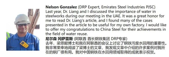 文章見刊后受到各界廣泛好評。日本內(nèi)閣戰(zhàn)略咨詢專家、日本東北大學(xué)校長助理松八重一代教授、韓國環(huán)境部高級研究員李旻庸等眾多專家學(xué)者和產(chǎn)業(yè)同仁給予高度評價,對中國鋼鐵40年水效指標(biāo)持續(xù)提升和綠色發(fā)展成果表示肯定和贊賞,認(rèn)為文中描述的中國鋼鐵企業(yè)廢水資源化典型案例對全球很多工廠均具有借鑒和啟發(fā)意義。