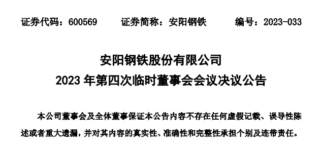 6月5日,安陽鋼鐵發布了《安陽鋼鐵股份有限公司2023年第四次臨時董事會會議決議公告》(以下簡稱《公告》)。