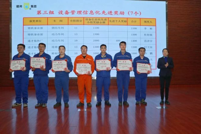 會上,各單位通報了集團公司10月份技術(shù)創(chuàng)新、修舊利廢和產(chǎn)量、成本、績效、崗位創(chuàng)新、技能工作室第三季度優(yōu)秀成果和10月份規(guī)程標準編制及設(shè)備管理信息化獎懲情況,并對先進單位及個人進行了隆重的表彰。隨后,獲獎單位代表通才煉鋼廠吳陽迎、呂志偉、通才煉鐵廠高星、鑄鐵事業(yè)部付偉分別進行了技術(shù)創(chuàng)新、修舊利廢、產(chǎn)線降本和規(guī)程標準編制先進的體會分享。
