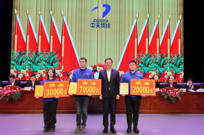 2月2日上午,在中天鋼鐵集團2023年度總結表彰大會上,中天鋼鐵集團董事局主席、總裁、黨委書記董才平表示,2024年,企業將實行“誰創效、誰分紅”的政策,拿出各下屬公司凈利潤的10%-20%,按照“經營層40%、中層干部30%、員工30%”的比例獎勵,共享企業發展成果。中天鋼鐵集團及公司領導、干部代表、先進代表等出席大會。大會由中天鋼鐵集團副總裁、中天南通公司總經理董力源主持。