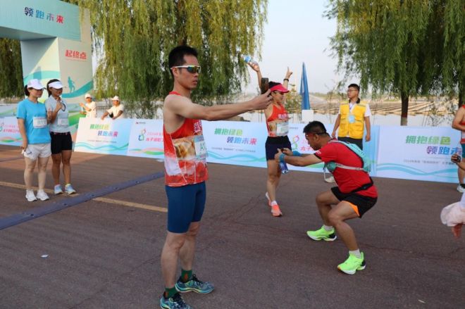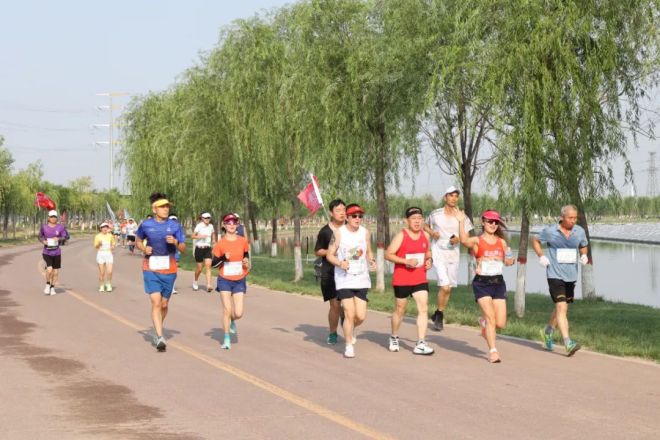 在率先進行的半程馬拉松比賽中,選手們從太子湖廣場出發,途經鹽堿地光伏、水上光伏、重鋼別墅、墻體光伏等地,環湖跑6圈后再回到終點。隨著發令槍槍響之后,參賽人員沖出起點、奮力奔跑,用激情和速度在享受比賽帶來快樂的同時,環湖領略太子湖的優美風景及集團綠色低碳發展成果,體驗與眾不同的馬拉松之旅。經過緊張激烈的角逐,武明瑤、郭利亞分別以59分55秒、1小時08分50秒獲得半程馬拉松男子組、女子組冠軍。