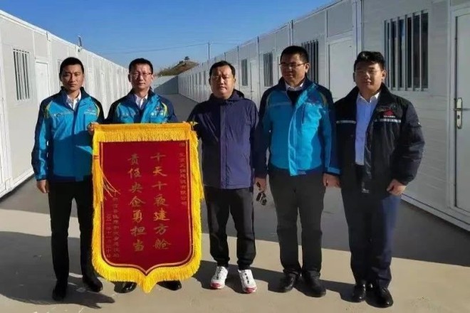 分秒必爭、使命必達(dá),264小時搶建“生命方舟”。2021年10月27日,中國二十二冶接到緊急通知,要求限期十天內(nèi)完成邢臺市新河縣臨時方艙隔離點(diǎn)建設(shè)任務(wù),并達(dá)到使用條件。疫情就是命令,防控就是責(zé)任。自接到政府部門指令后,中國二十二冶高度重視,從邢臺各在建項目調(diào)遣精兵強(qiáng)將組建成搶工團(tuán)隊,組織施工隊伍與機(jī)械第一時間進(jìn)駐現(xiàn)場。項目實行“掛圖作戰(zhàn)”,建立“一小時調(diào)度”機(jī)制,及時了解工程進(jìn)度、即刻解決問題,以“多點(diǎn)多組多面”的方式進(jìn)行不間斷作業(yè)。2小時完成初步方案設(shè)計,5小時完成雨污水管網(wǎng)安裝方案,6小時完成自來水管網(wǎng)安裝布設(shè),48小時完成4臺變壓器安裝施工及供電保障,3天完成2萬方基礎(chǔ)回填平整和地面硬化及通訊、聯(lián)通5G網(wǎng)絡(luò)安裝建設(shè),7天完成410間方艙安裝......為邢臺取得抗疫斗爭階段性勝利提供了有力保障,收到新河縣住房和城鄉(xiāng)建設(shè)局送來的“十天十夜建方艙 責(zé)任央企勇?lián)?dāng)”的錦旗與表揚(yáng)信。2023年4月9日,中國二十二冶再度扛起“硬核”擔(dān)當(dāng),圓滿完成邢臺市新河縣方艙隔離點(diǎn)包含160間地上獨(dú)立方艙擴(kuò)建任務(wù),再次充分彰顯了央企“頂梁柱”和“壓艙石”的作用。