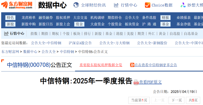 4月19日,中信特鋼發布了2025年第一季度報告。