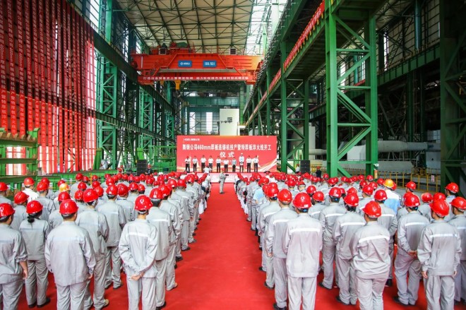 10時(shí)15分,在全場(chǎng)矚目下,吝章國莊嚴(yán)宣布:“河鋼集團(tuán)舞鋼公司460mm厚板連鑄機(jī)正式投產(chǎn)!特厚板淬火線開工!”隨著禮炮鳴響,河鋼集團(tuán)舞鋼公司460mm厚板連鑄機(jī)正式投產(chǎn),特厚板淬火線同時(shí)開工,這不僅是舞鋼公司發(fā)展的重要里程碑,更吹響了舞鋼公司邁向高端化、智能化、綠色化的響亮號(hào)角。