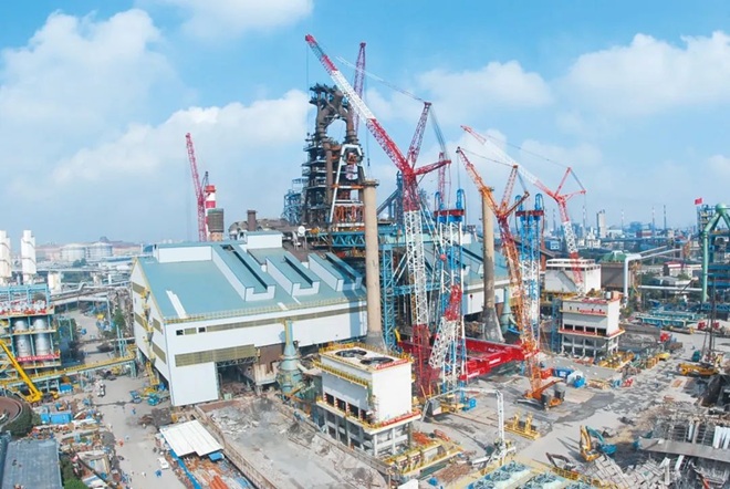 在衢州元立1280立方米高爐新建項目中,高爐本體及框架一體化模塊高達85.7米,重量達3900噸。通過12軸智能化SPMT模塊車,上海寶冶團隊在2小時內就完成了該高爐模塊的精準平移安裝。這項技術的應用,使冶金工程的模塊化率提升至95%,通過全系統集成預制,現場作業量減少了70%,較傳統模式縮短工期6個月,為大型冶金設備的建造樹立了全新的技術標桿。