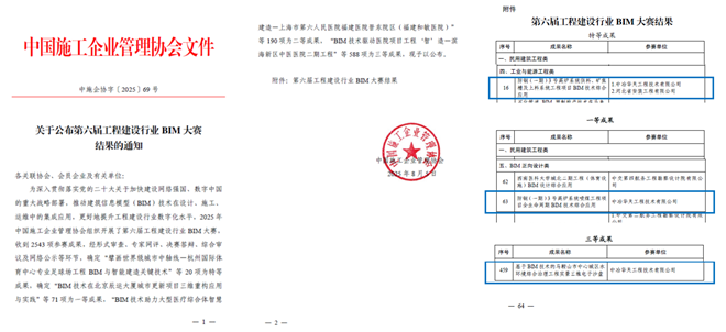 據悉,由中國施工企業管理協會主辦的全國工程建設行業BIM大賽是國內最具影響力的BIM賽事之一,賽制完善,行業內知名度高。本屆大賽覆蓋建筑、交通、能源、市政等全領域,共吸引了包括中建、中鐵、中交、中電、中核、中冶等數十家央企和眾多地方龍頭建工及能源企業在內的1200余家單位報名,提交了2543項作品參與評選,競爭激烈。經過初賽網絡評審、決賽現場答辯和專家審議,最終選出特等成果20項、一等成果71項、二等成果190項、三等成果588項。