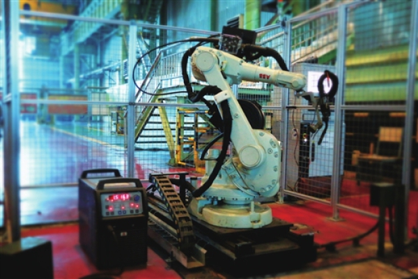 圖為碳鋼冷軋鋼卷自動焊接機器人。 李朝婷 攝