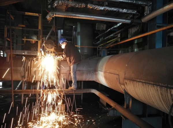 圖為該分廠正組織人員,對2號35t/h鍋爐高爐煤氣快切閥進行更新改造時的場景。