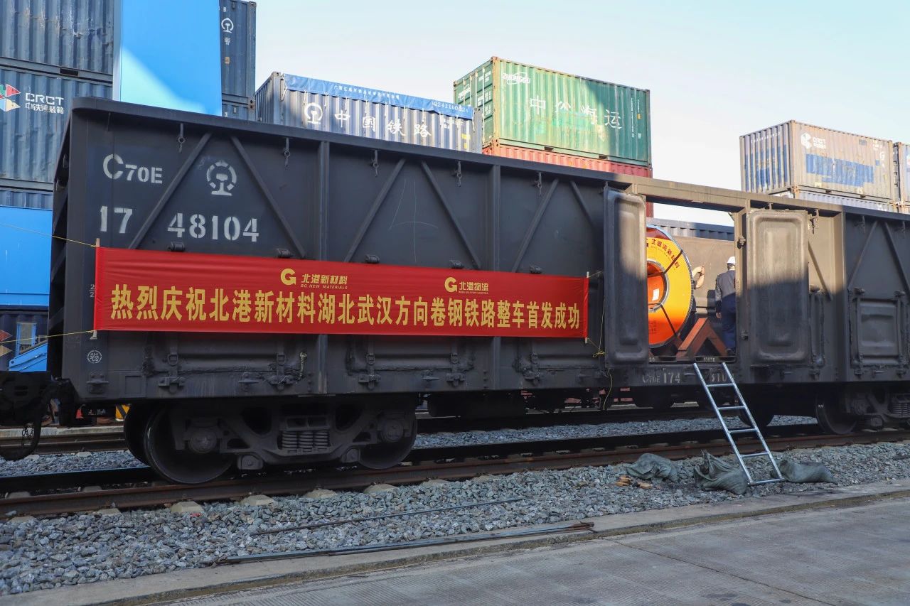 以往北海卷鋼運往武漢,要從鐵山港船運至江蘇江陰港、再通過江船轉駁到武漢的“海運+水運”模式,耗時17天左右。在本次運輸過程中,首次采用北海鐵路直發,以定制的敞車及卷鋼座駕進行固定,卷鋼整車發運直達武漢,減少2次中轉環節,物流運輸時長由17天壓縮至8天。這不僅為北港不銹鋼產品銷售拓展了新的物流運輸途徑、降低了貨物損耗風險,還滿足了客戶靈活應對多變銷售形勢的需求,提高了北港不銹鋼的銷售效率。