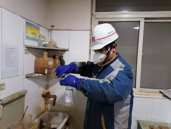 每天早上,杜永利早早趕到生產現場,按比例配置并裝好一瓶瓶消毒液,分送到分廠下屬酸軋、酸洗、酸再生作業區負責人手上,詳細指導消毒噴射作業。等一圈跑下來,已經臨近中午,杜永利再匆匆趕回酸再生現場,組織協調疫情期間氧化鐵粉、濾餅等外發,保證外發物流通道順暢。同時檢查外來進廠人員是否佩戴口罩,體溫是否正常,出入登記是否完整。中午隨便吃了點食堂打來的飯菜后,又趕往利民協力相關方,在室外對協力人員舉行防疫宣貫,同時檢查相關方防疫工作落實執行情況。