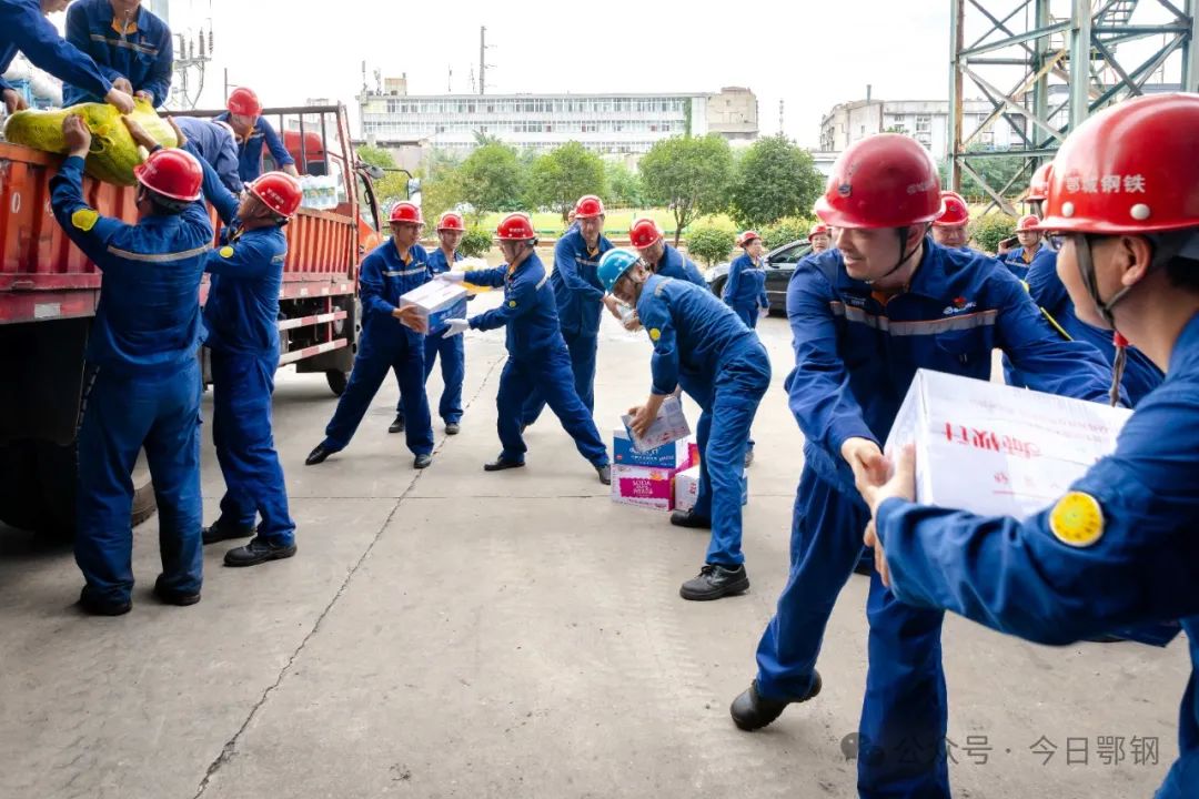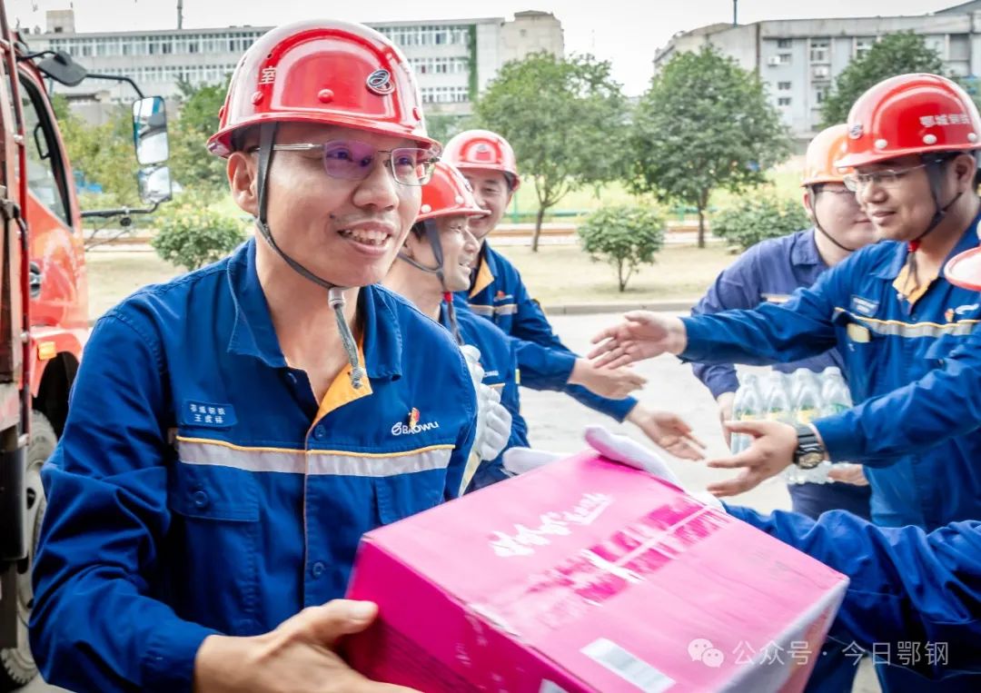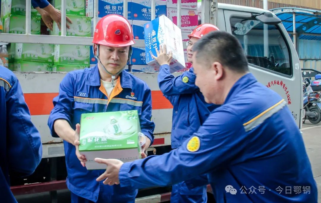 夏日送清涼,關愛暖人心。7月9日上午,鄂城鋼鐵公司領導分組,赴生產現場,慰問在酷暑中堅守崗位的職工,為他們送去金銀花露、鹽汽水、蘇打水、西瓜、綠豆等各類防暑降溫物資。
