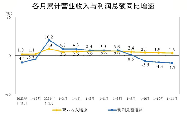 2024年11月份,規模以上工業企業利潤同比下降7.3%。 (郭同炬)