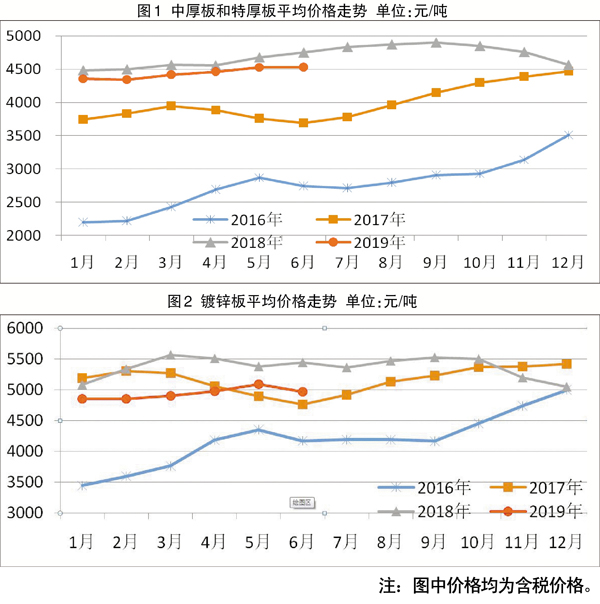 分品種看,6月份,生產特厚板55萬噸,同比下降4.4%;銷售56萬噸,其中出口5萬噸,產銷率為101.8%;售價為5015元/噸,環比上漲31元/噸;月末庫存為38萬噸,環比減少1萬噸。
