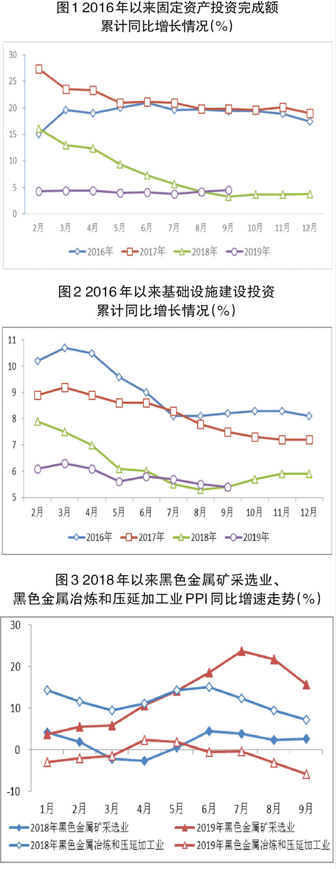 據國家統計局發布的信息,前三季度,宏觀經濟總體運行平穩,增長結構得到改善,雖然增速有所放緩,但保持在合理區間。其中,固定資產投資同比增速回落明顯,特別是第二產業固定資產投資同比增速低于去年同期;工業投資增速同比回落,但對經濟增長的貢獻率提升;基建投資增速近期有所加快,拉動作用逐漸顯現;原燃料類產品價格與黑色金屬冶煉和壓延加工業產品價格分別一升一降,鋼企利潤空間被壓縮。