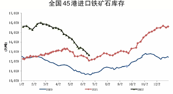 今年初以來,國內(nèi)鐵礦石需求不斷走強,國內(nèi)鐵水產(chǎn)量不斷攀升,鐵礦石持續(xù)大幅去庫存,但后期鐵礦石需求在粗鋼壓減政策及鋼廠低利潤格局下中短期均存在下降趨勢,短期由于長流程鋼廠持續(xù)虧損主動限產(chǎn)。6月18日當(dāng)周,調(diào)研數(shù)據(jù)顯示,247家鋼廠高爐開工率為83.83%,周環(huán)比下降0.28%,同比下降3.57%;高爐煉鐵產(chǎn)能利用率為90.15%,周環(huán)比增加0.01%,同比下降1.47%;鋼廠盈利率為41.99%,周環(huán)比下降16.88%,同比下降44.16%。截至6月20日,據(jù)我的鋼鐵網(wǎng)不完全統(tǒng)計,國內(nèi)22家鋼廠發(fā)布檢修計劃。其中,麗水華宏鋼鐵制品有限公司預(yù)計于6月19日—7月3日全廠停產(chǎn)檢修。預(yù)計短期鐵礦石需求將出現(xiàn)顯著下降,中期受粗鋼壓減政策限制。國家統(tǒng)計局?jǐn)?shù)據(jù)顯示,2022年5月份,全國粗鋼產(chǎn)量為9661萬噸,同比下降3.5%。1月—5月份,全國粗鋼產(chǎn)量為43502萬噸,同比下降8.7%。