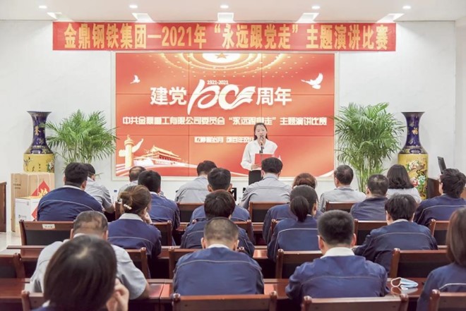 圖為金鼎鋼鐵2021年“永遠跟黨走”主題演講比賽現場。(金鼎鋼鐵供圖)