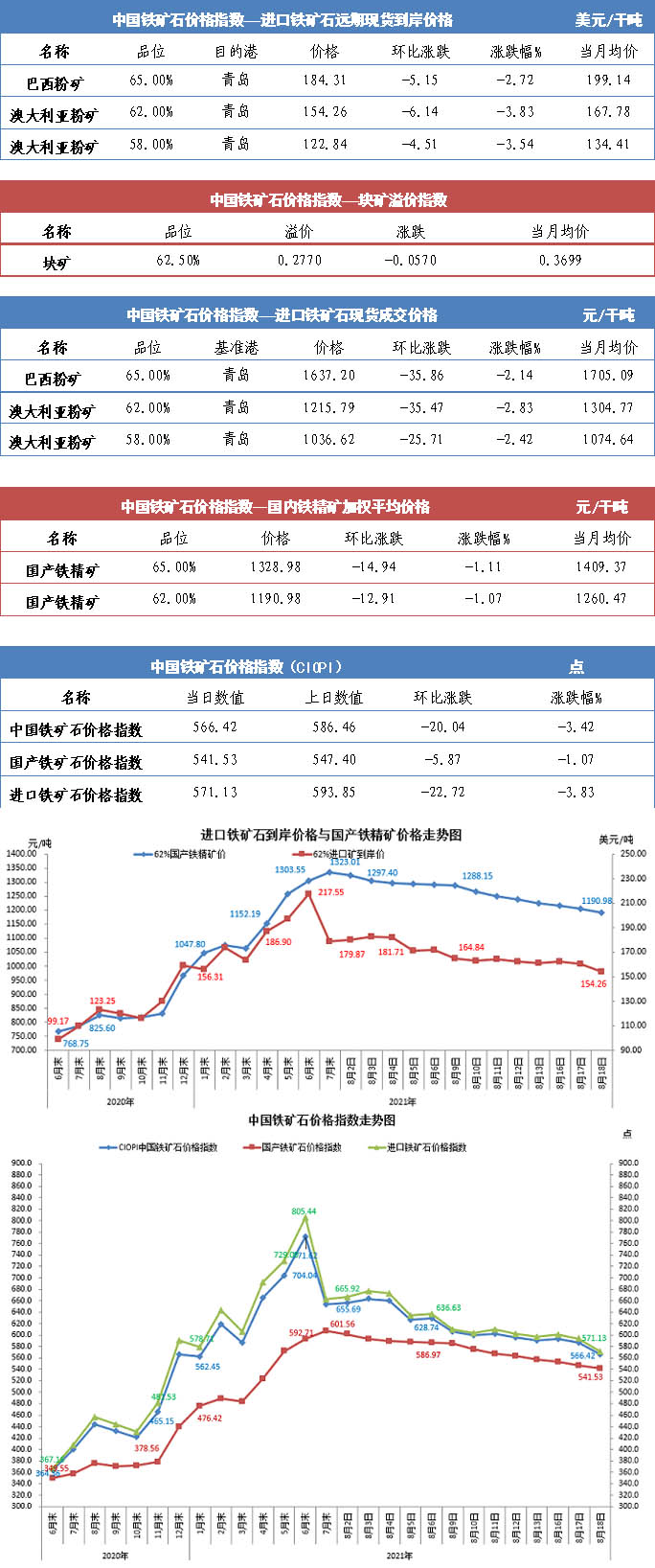 【行業(yè)指數(shù)】8月18日中國鐵礦石價格指數(shù)