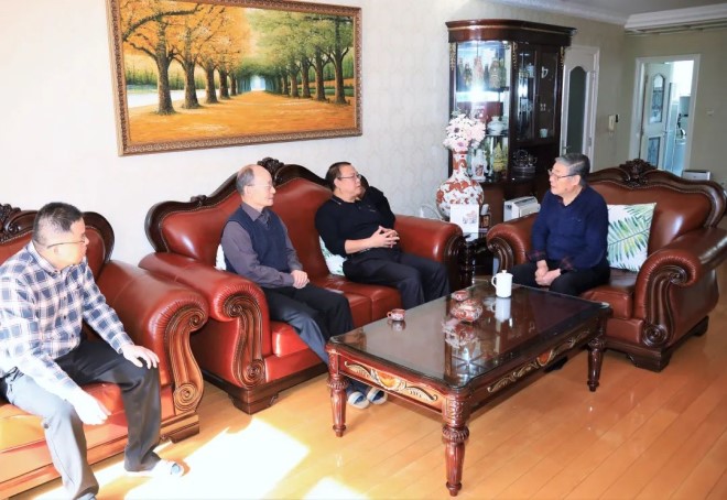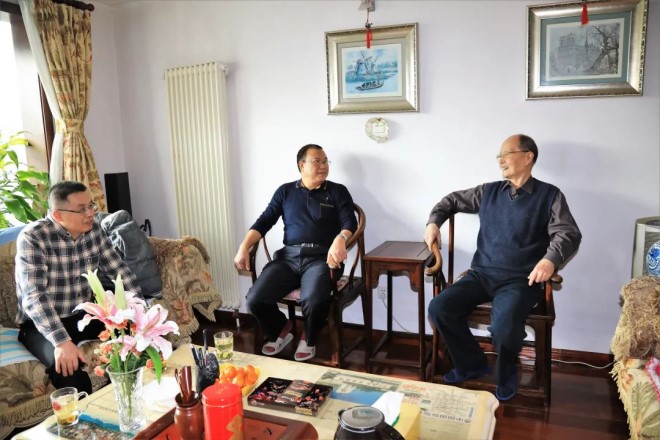 圖為陳玉千一行看望中國冶金報社第一位首席專欄作家,原冶金部老司長,中鋼協原常務副秘書長、首席分析師,冶金經研中心原黨委書記戚向東。