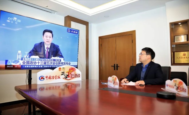 2022年3月3日下午,全國(guó)政協(xié)十三屆五次會(huì)議新聞發(fā)布會(huì)在北京召開(kāi)。圖為中國(guó)冶金報(bào)社兩會(huì)報(bào)道組記者朱曉波通過(guò)網(wǎng)絡(luò)視頻“云”參會(huì)。