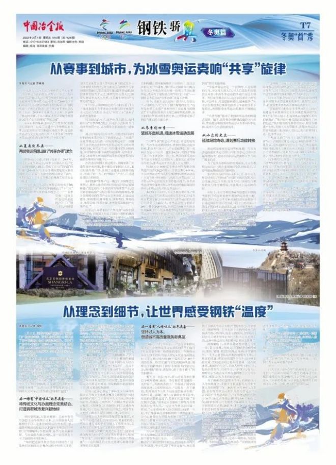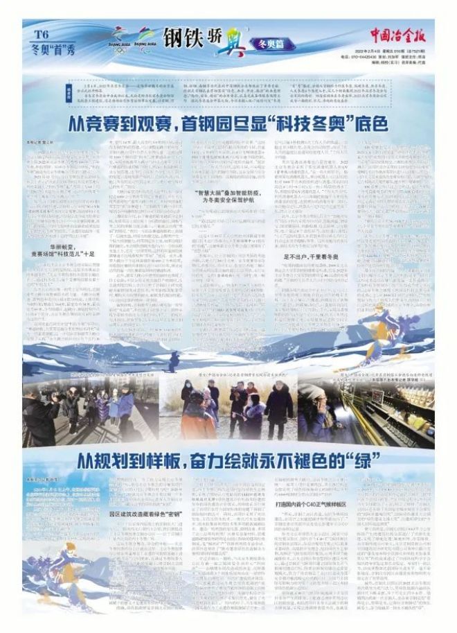 去年底,在首鋼服務(wù)保障冬奧進入最緊張、最關(guān)鍵的時刻,何文波作出“首鋼為服務(wù)保障冬奧會做出了重大貢獻,要組織專題報道,宣傳首鋼轉(zhuǎn)型、宣傳首鋼與冬奧會”的批示。為此,中國冶金報社迅速行動,去年12月10日,報社黨委書記、社長陳玉千帶隊專程去首鋼調(diào)研,與首鋼集團黨委書記、董事長張功焰等領(lǐng)導圍繞首鋼轉(zhuǎn)型發(fā)展和服務(wù)保障冬奧等工作進行深入座談交流。在之后近兩個月的時間里,中國冶金報社組成強大陣容,編輯記者全力以赴、連續(xù)奮戰(zhàn)、深入采寫,接連推出5篇“首鋼轉(zhuǎn)型高質(zhì)量發(fā)展”系列長篇報道。冬奧會開幕當天,中國冶金報又在《鋼鐵驕“奧”冬奧篇》專版中刊登了首鋼集團黨委書記、董事長張功焰《保持昂揚斗志,勇于擔當作為,奮力書寫冬奧服務(wù)保障的優(yōu)異答卷》的署名文章和首鋼服務(wù)保障冬奧4篇專題報道。
