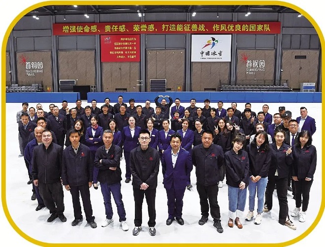 首鋼園國(guó)家冬季運(yùn)動(dòng)訓(xùn)練中心運(yùn)營(yíng)管理團(tuán)隊(duì)就是在服務(wù)保障國(guó)家隊(duì)和冬奧會(huì)中誕生的。2018年6月份,隨著國(guó)家隊(duì)到首鋼駐訓(xùn),第一批首鋼轉(zhuǎn)型職工從學(xué)習(xí)制冰技術(shù)開始,踏上了服務(wù)保障冬奧的新征程。首鋼冬訓(xùn)中心共有員工30多名,同時(shí)還管理協(xié)調(diào)100余名物業(yè)人員和餐飲團(tuán)隊(duì)。團(tuán)隊(duì)中有制冰師12人,大部分由首鋼工人轉(zhuǎn)型轉(zhuǎn)崗而來(lái),他們從“火”到“冰”的轉(zhuǎn)型,既是個(gè)人職業(yè)生涯的一次崗位轉(zhuǎn)換,又是首鋼轉(zhuǎn)型發(fā)展的一個(gè)縮影。他們從沒有見過冰場(chǎng)的“小白”成長(zhǎng)為國(guó)家隊(duì)制冰師,通過不懈努力,刻苦鉆研,創(chuàng)出了首鋼制冰技術(shù)品牌,劉博強(qiáng)、劉永亮等明星制冰師還走向了冬奧賽場(chǎng)為冬奧服務(wù)。