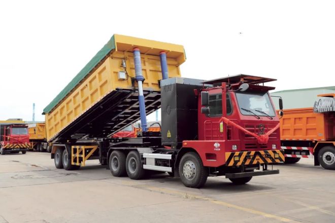 該新能源冶金大物流水渣車是專為寶鋼股份生產(chǎn)協(xié)力研發(fā),將傳統(tǒng)燃油機(jī)改為新能源電驅(qū),采用磷酸鐵鋰動(dòng)力鋰電池作為動(dòng)力源動(dòng)力更強(qiáng)勁,降低碳排放;采用充、換電雙模式結(jié)構(gòu),蓄能更方便快捷,續(xù)航里程更長(zhǎng),能夠滿足冶金工業(yè)生產(chǎn)運(yùn)轉(zhuǎn)和“人停機(jī)不停”的工作節(jié)奏,為實(shí)現(xiàn)“雙碳”目標(biāo)做出積極貢獻(xiàn)。中冶寶鋼以節(jié)能為核心凸顯設(shè)計(jì)創(chuàng)意,強(qiáng)化全生命周期的一體化冶金運(yùn)營(yíng)服務(wù),積極攻關(guān)并同步解決動(dòng)能回收、粉塵與酸水侵蝕防護(hù)、行車安全防護(hù)及入庫(kù)輔助系統(tǒng)等技術(shù)難題;大箱自動(dòng)鎖緊機(jī)構(gòu)設(shè)計(jì)“借力發(fā)力”,將機(jī)械能轉(zhuǎn)化為動(dòng)能再利用,以水渣車的重力自動(dòng)鎖緊車廂后門,防止渣水溢出;倒渣時(shí)自動(dòng)鎖緊機(jī)構(gòu)隨著大箱的抬起自動(dòng)開啟大箱后門,消除了人工頻繁操作形成的安全隱患,保證了操作人員安全,提高了生產(chǎn)效率,減少了能源消耗,讓小設(shè)計(jì)解決大問(wèn)題;以高效為基礎(chǔ)提高物流效率,研發(fā)團(tuán)隊(duì)突破性地調(diào)整車廂寬度,增加了單次容量,提升物流周轉(zhuǎn)率;以實(shí)用為本提升產(chǎn)品性能,水渣裝卸采用雙油缸舉升技術(shù),增強(qiáng)舉升動(dòng)力,提高穩(wěn)定性;采用加長(zhǎng)版防塵罩,有效防止揚(yáng)塵,以高強(qiáng)度耐磨板應(yīng)對(duì)水渣產(chǎn)生的酸水腐蝕。