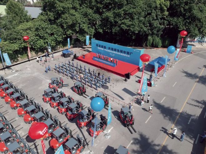 圖為中冶寶鋼聯(lián)合武鋼有限舉辦“清潔運(yùn)輸,共建綠色城市鋼廠”非道路移動(dòng)機(jī)械更新儀式。