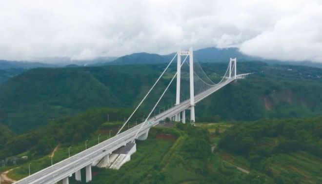 昆鋼鋼材應用于長2471米的龍江大橋,這是目前亞洲山區(qū)跨徑最大的鋼箱梁懸索橋 (昆鋼 供圖)