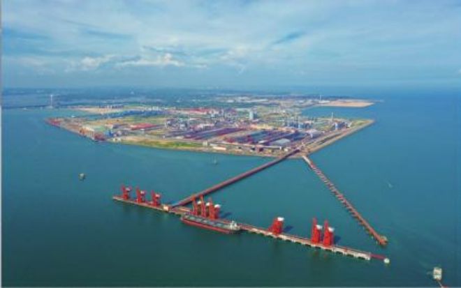 沿海鋼企具有內陸鋼企無法比擬的成本優勢。“十三五”期間,柳鋼把目光投向北部灣畔,舉集團之力,推進防城港鋼鐵基地和玉林中金不銹鋼基地項目建設,形成與國家“一帶一路”倡議和北部灣經濟圈發展規劃相匹配的布局。2018年、2019年,這兩個項目相繼開工建設,柳鋼成千上萬名建設者倒排工期,攻堅克難,加快推進項目建設。他們揮灑汗水、兢兢業業,用奮斗編織著沿海深藍的夢;他們用勤勞的雙手,把昔日的荒灘逐步變成一座初具雛形的現代化生態鋼鐵企業。