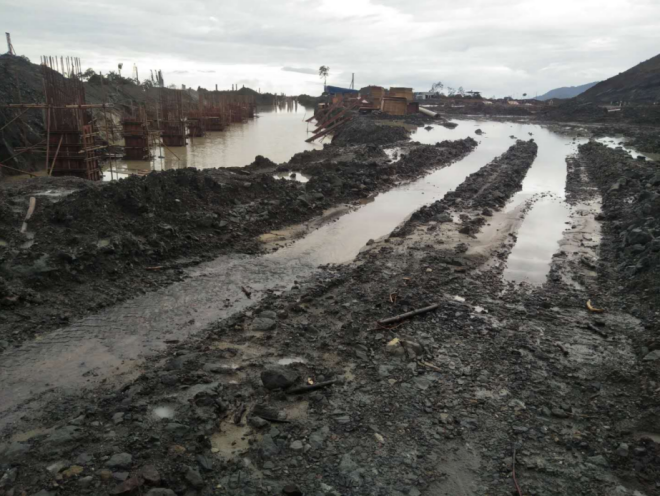 雨季施工工地一片汪洋