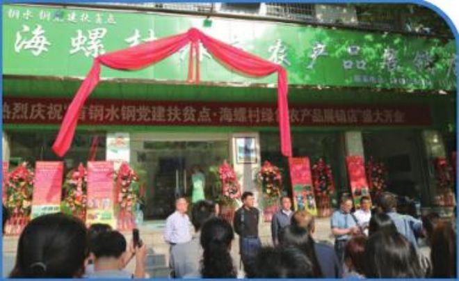 2019年4月23日上午,“首鋼水鋼黨建扶貧點海螺村綠色農產品展銷店”正式揭牌營業,標志著水鋼篤行國有企業責任擔當、助力脫貧攻堅的又一實體有效落地。(張志喜 攝)